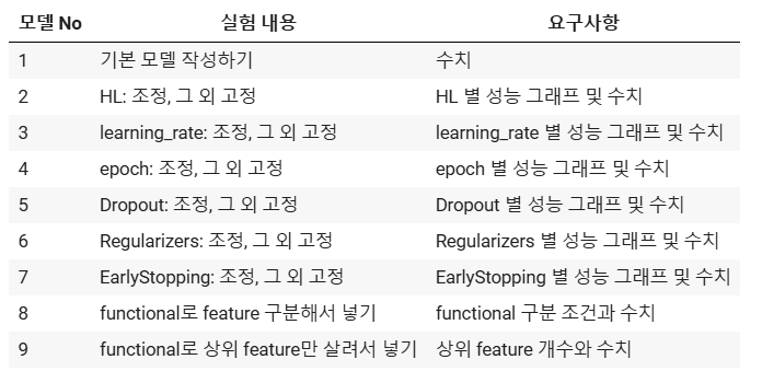 2일차엔 다양한 딥러닝 구조로 모델을 생성하고 각 모델 별 5번 반복수행하고 얻은 성능의 평균을 계산하여 비교했다.