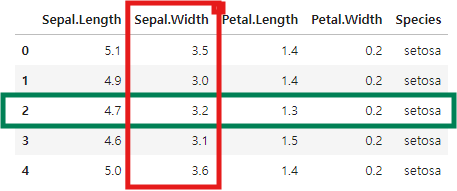 - 행(Row): 개체, 관측치, 기록, 사례, 경우