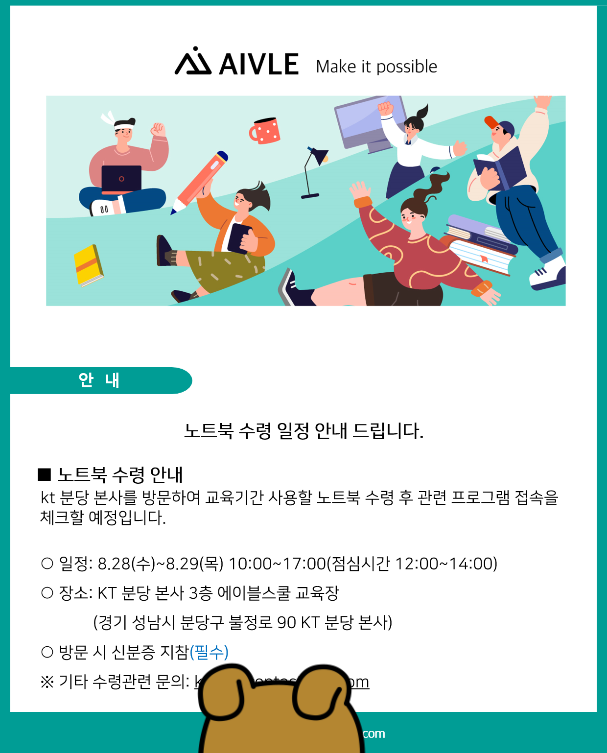 노트북 수령 안내 사항을 메일로 받았습니당 (8/14)