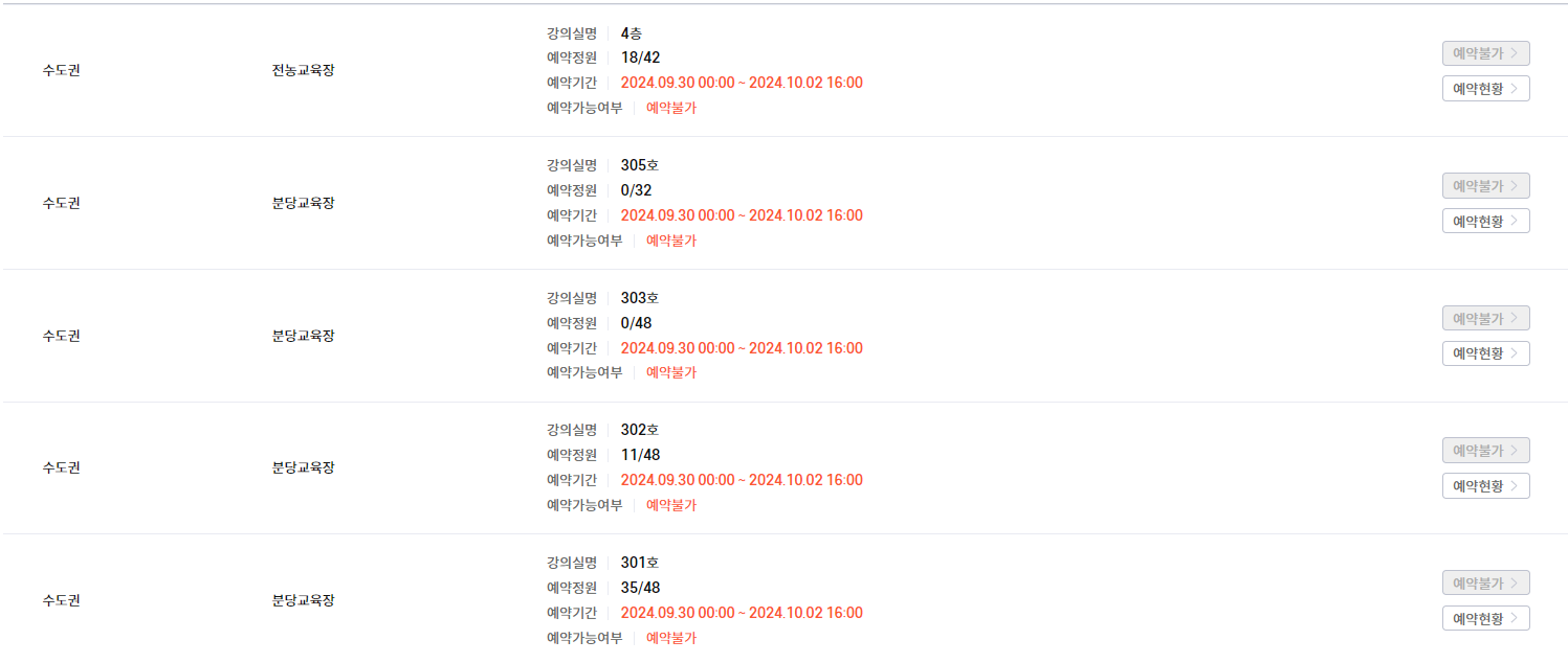 예약은 교육장 예약 카테고리 들어가면 전농 or 분당 교육장으로 예약이 가능합니다 ㅎㅎ